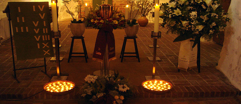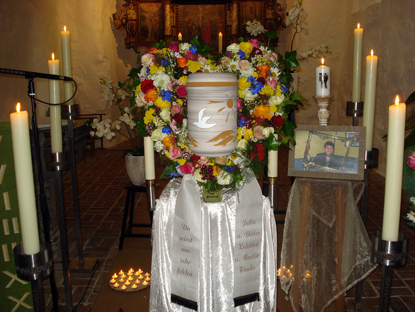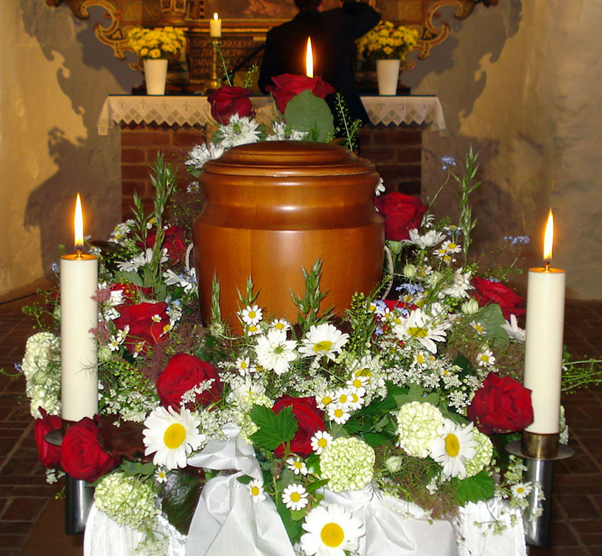 Es ist auch möglich, die Einäscherung vor der Trauerfeier vornehmen zu lassen. In diesem Fall wird die Urne anstelle des Sarges in der Kirche oder Kappelle aufgesetellt. Anschließend wird die Urne auf dem Friedhof beigesetzt.