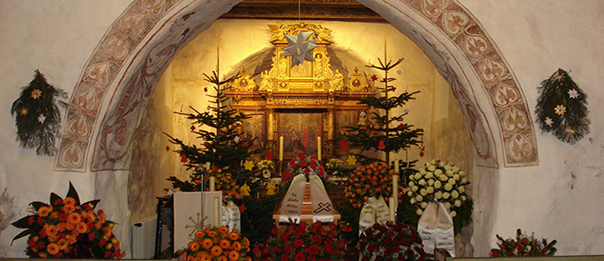 Bei der Erdbesattung wird der Verstorbene in einen Sarg eingebettet und nach der Trauerfeier schließlich auf dem gewünschten Friedhof beigesetzt. Die Trauerandacht kann z.B. in der abgebildeten wunderschönen Kirche in Süderstapel stattfinden.